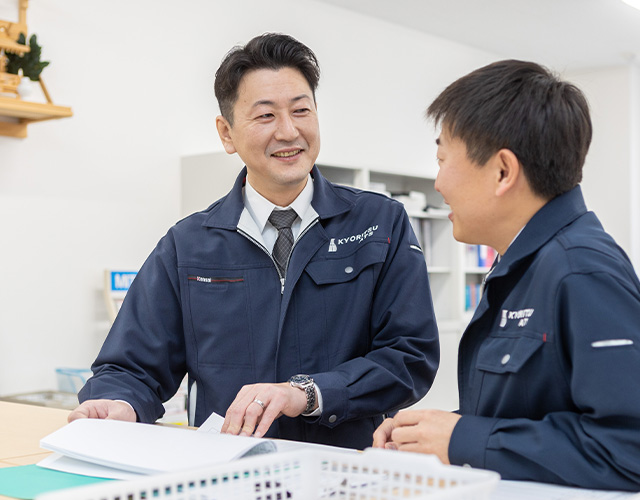 早く、正確に、お客様のご要望やニーズを実現するノウハウは私自身も上司から教わったので、下の人間にもしっかり継承してきたいと思います。そのために心がけているのは、とにかくコミュニケーションをとること。教育の場をわざわざ設けて教えるだけではなく、常に見本を示し、課題に対する答えは教えず、自身で考えてもらうようにしています。頭を使って自分で考え、行動し、反省を経験し改善することで自分のスキルアップにつながってくるからです。今まで成功してきた諸先輩方の姿や話を見せながら、なぜ成功しているのか、行動を見て理解できない場合はコミュニケーションをとって、ああいうやり方がいいという話をしながら、実務を通じて実践的な力を習得できるようフォローしています。
