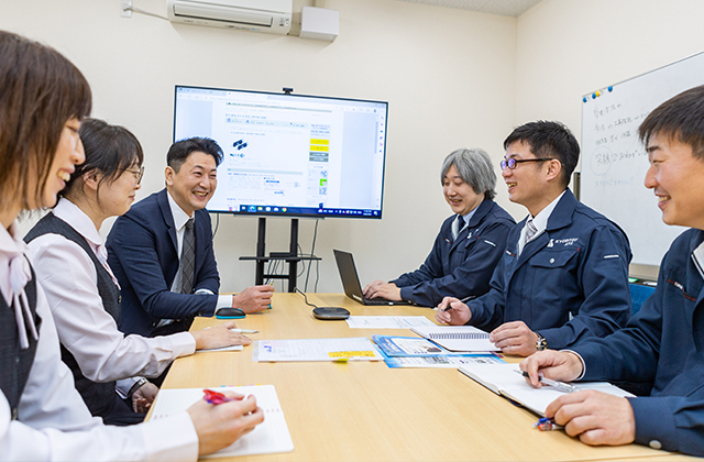 メカトロニクスなど最先端のものを扱っているというと、難しいイメージをお持ちの人も少なくないと思いますが、より専門的なことはメーカーさんにお願いできますし、取引のあるメーカーの勉強会や展示会には積極的に参画することで、必要な機器や装置の知識は入社後に身につけることができます。